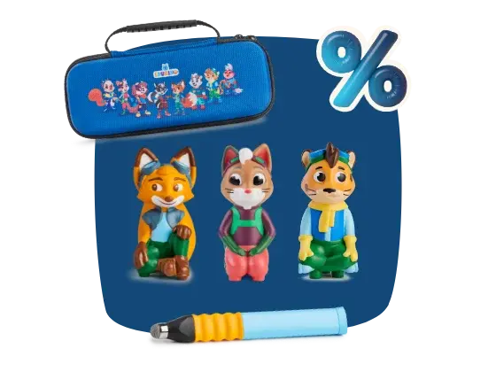 Leo "Freundschaft & Soziales" Ein Kind benutzt einen Edurino DE Leo "Freundschaft & Soziales"-Stift, um mit einer Spielzeugfigur an seiner Seite ein Tierzuordnungsspiel zu spielen - und fördert so soziale Fähigkeiten und Empathie durch interaktives digitales Spiel.