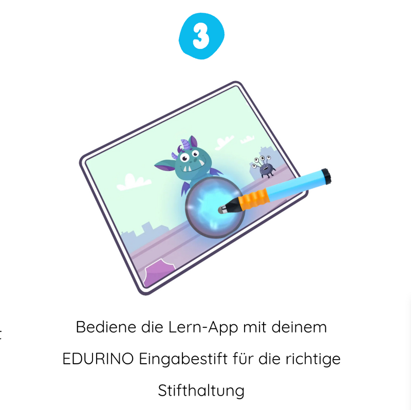 3. Mit Stift spielen und lernen: der ergonomische Eingabestift sorgt dafür, dass dein Kind eine richtige Stifthaltung übt, während es Aufgaben löst.