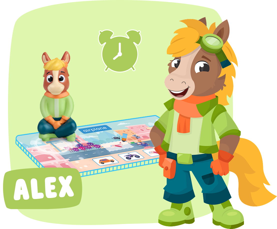 Mit interaktiven Aufgaben rund um Stunden, Minuten und die Uhrzeiger taucht dein Kind in die spannende Welt der Zeit ein. Gemeinsam mit dem pfiffigen Pferdchen Alex lernt es, die Uhr zu lesen, Tagesabläufe zu planen und sich in der zeitlichen Struktur des Alltags zurechtzufinden.