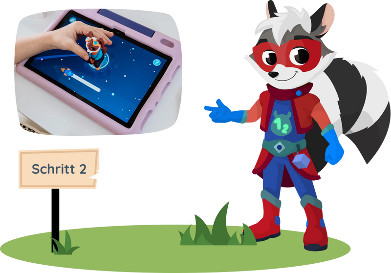 Now it gets exciting for your child: Simply hold the figure on the displayed circle on the tablet in the app – and the rocket will launch and the learning world will open up.